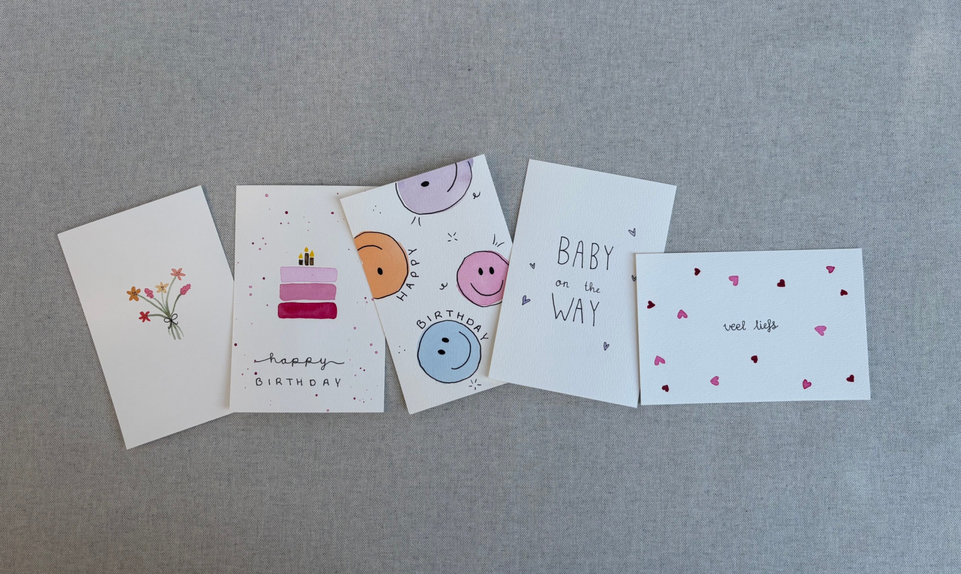 Ontdek onze handgemaakte ansichtkaarten, elke kaart is met de hand met aquarel gemaakt. Alle kaarten zijn uniek en perfect voor diverse gelegenheden. Blader door ons assortiment en vind jouw favorieten!